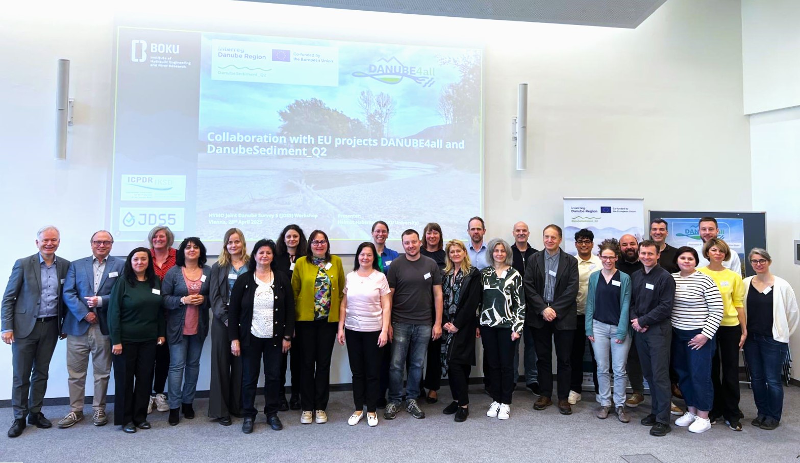 In enger Zusammenarbeit mit der Internationalen Kommission zum Schutz der Donau (ICPDR) sowie dem HYMO-Team des Projekts DanubeSediment_Q2 und dem Institut für Wasserbau der BOKU Wien wurde ein zweitägiger Workshop zur hydromorphologischen Erhebung im Vorfeld des Joint Danube Survey 5 (JDS5) erfolgreich konzipiert und durchgeführt. Die Veranstaltung fand im BOKU Wasserbaulabor (BOKU River Lab) in Wien statt und brachte rund 40 Expertinnen und Experten aus dem gesamten Donauraum zusammen.